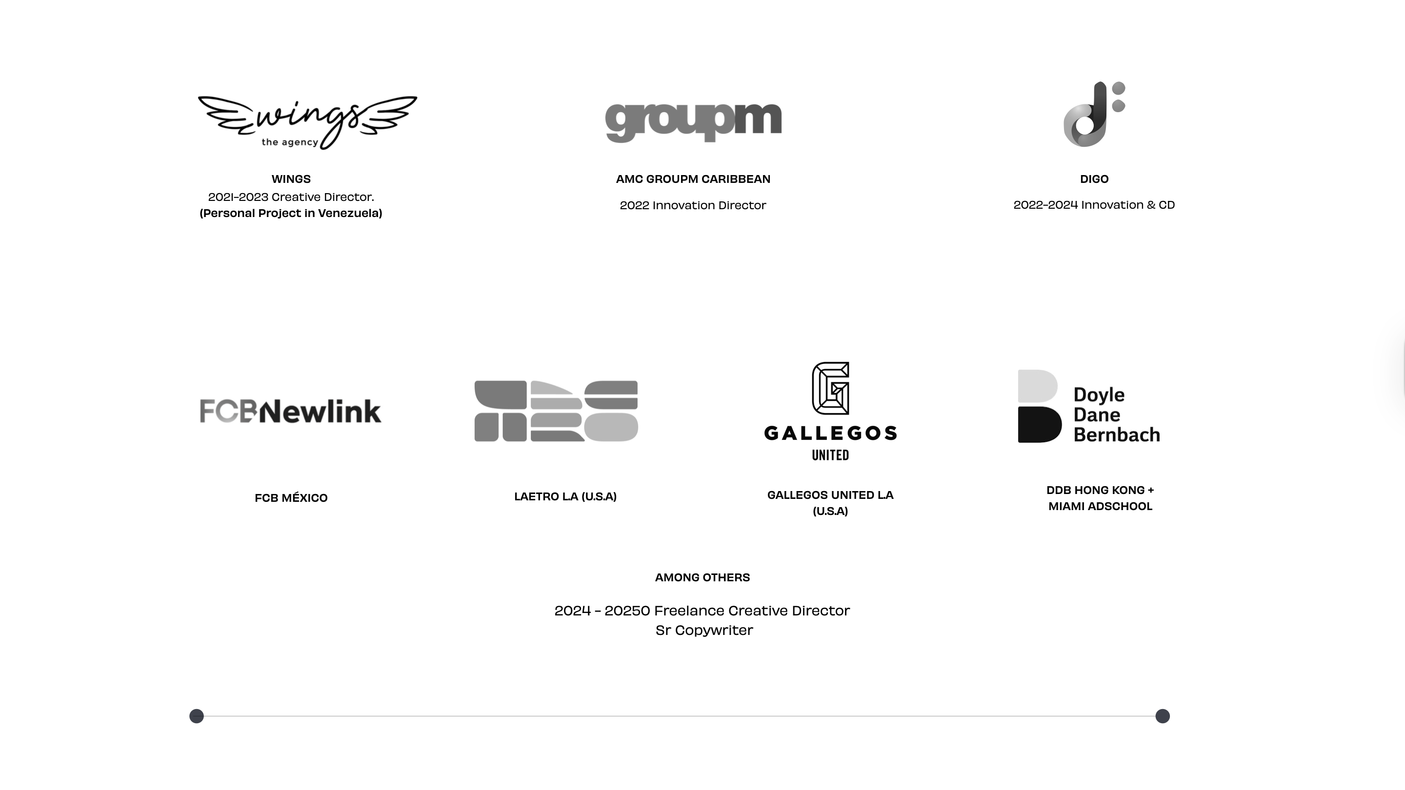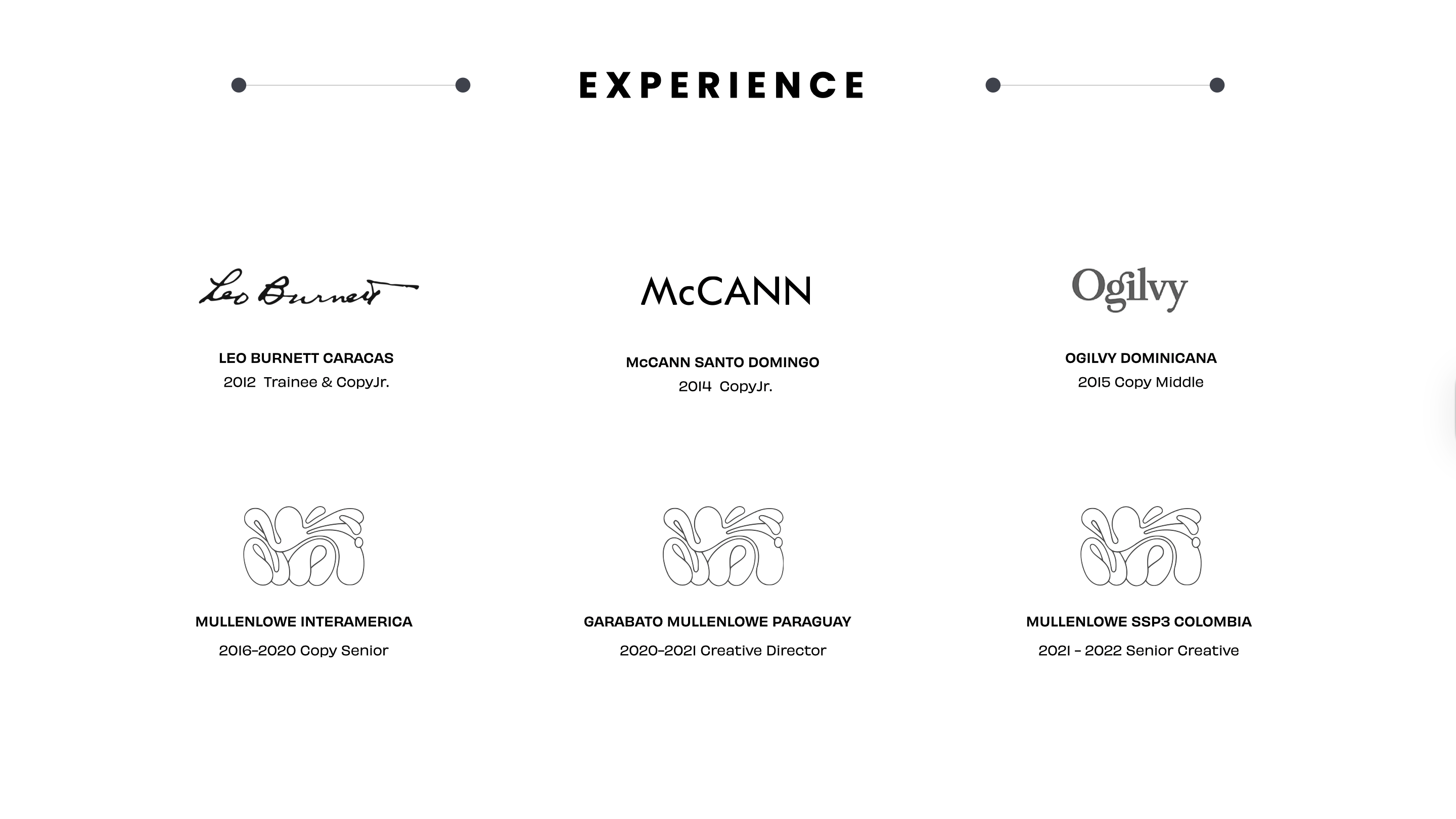 He began his career at McCann and Ogilvy in the Dominican Republic, later leading regional work for MullenLowe Group in the Dominican Republic, Paraguay, and Colombia. He also served as Director of Innovation at GroupM Caribbean, developing strategic work for brands like Presidente (AB InBev) and TotalEnergies, and collaborated with Digo Hispanic Media in the U.S. Hispanic market, working for the past two years as a Freelance Creative Director for several agencies around the world.